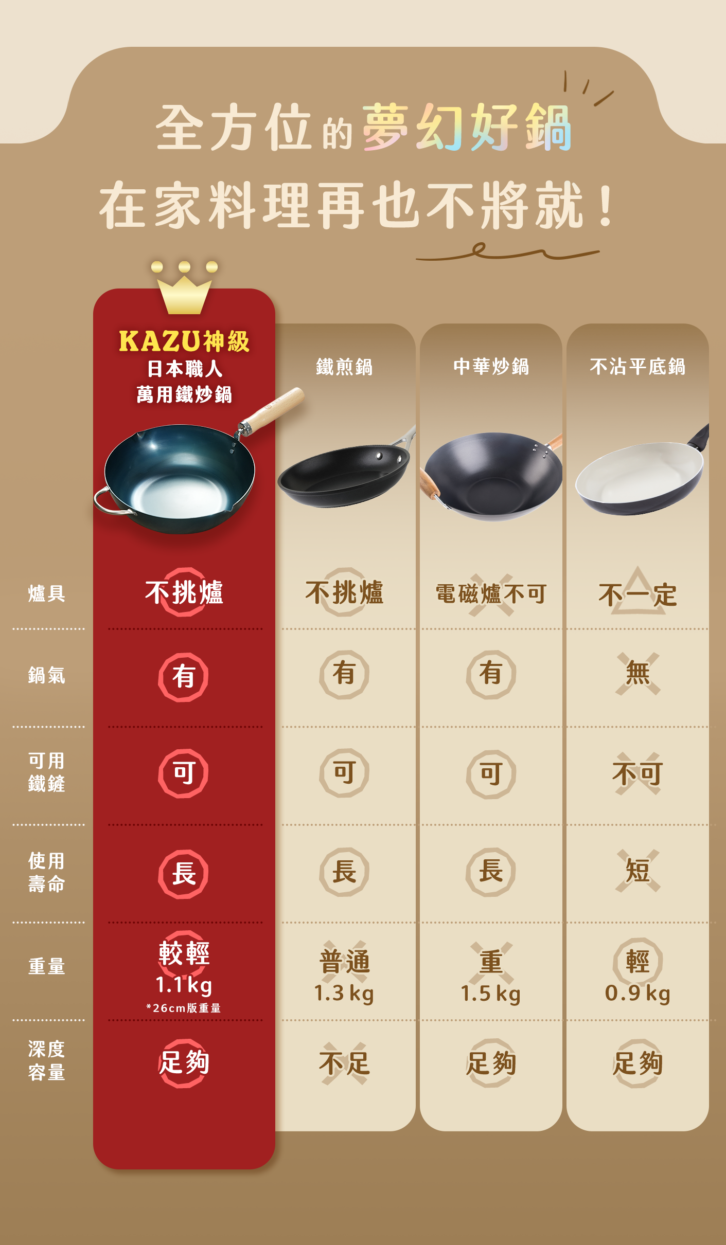 ・商品名稱:本間家Honmaya!KAZU神級日本職人萬用鐵炒鍋 - 26cm
